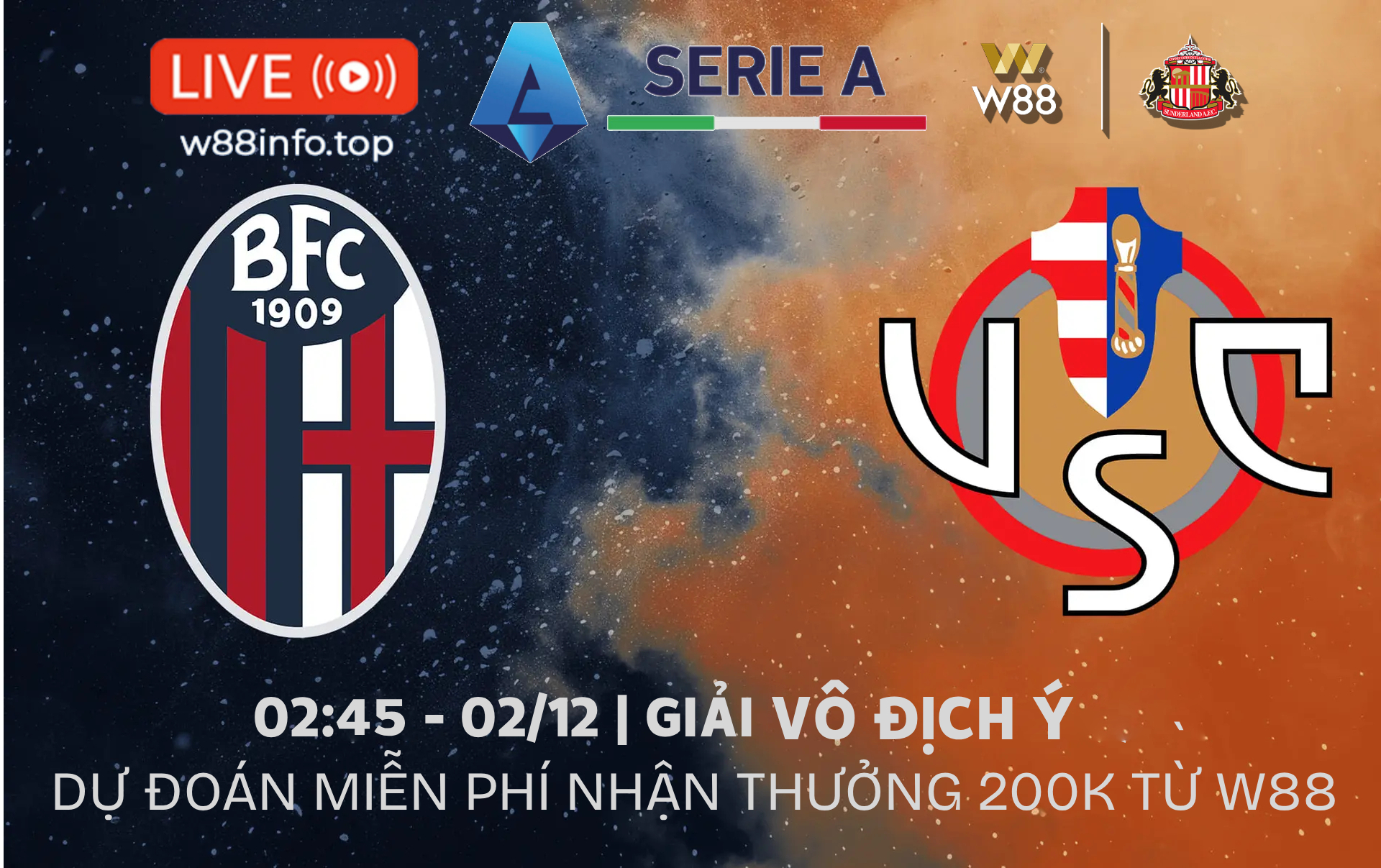 [W88 – MINIGAME] BOLOGNA – CREMONESE | HƯỚNG TỚI 3 ĐIỂM